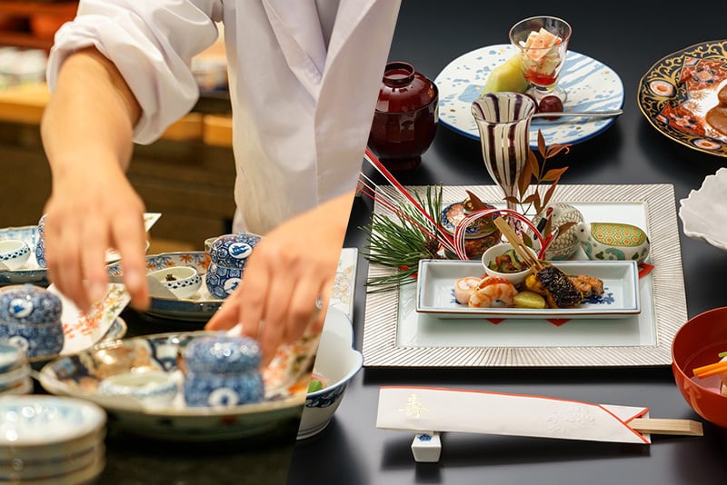 世界に誇る焼物の町、有田。そこに「日本料理 保名」はあります。有明海や玄界灘の海の幸、地元産の山の幸を使った絶品の和食料理を、有田焼の器に盛り付けて提供しています。